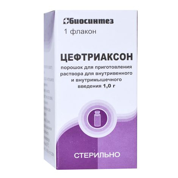 ЦЕФТРИАКСОН 1г x 1г N1 пор д/пригот р-ра в/в и в/м введ БИОСИНТЕЗ