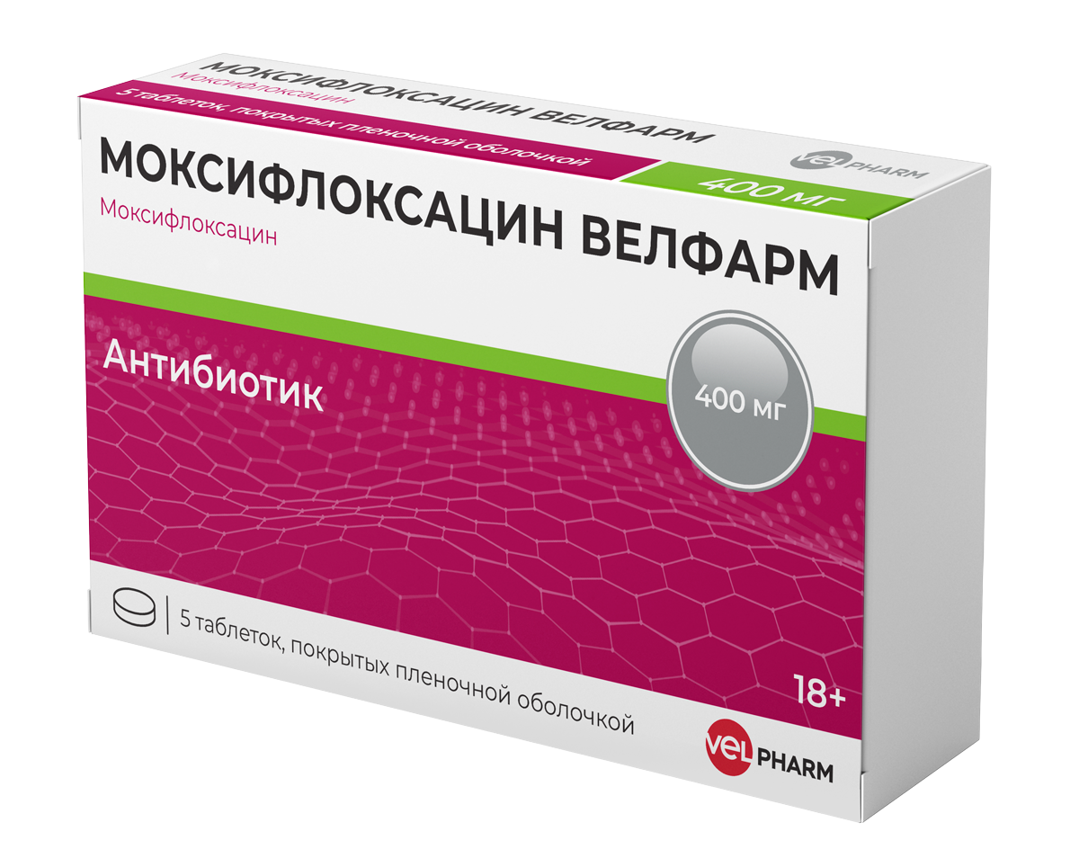 МОКСИФЛОКСАЦИН ВЕЛФАРМ 400мг N5 табл п.п.о. ВЕЛФАРМ