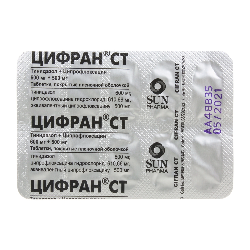 ЦИФРАН СТ 600мг+500мг N10 табл п.п.о. САН ФАРМАСЬЮТИКАЛ ИНДАСТРИЕС