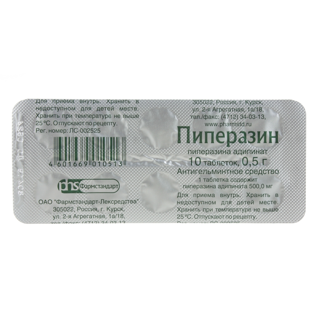 ПИПЕРАЗИН 500мг N10 табл ФАРМСТАНДАРТ-ЛЕКСРЕДСТВА