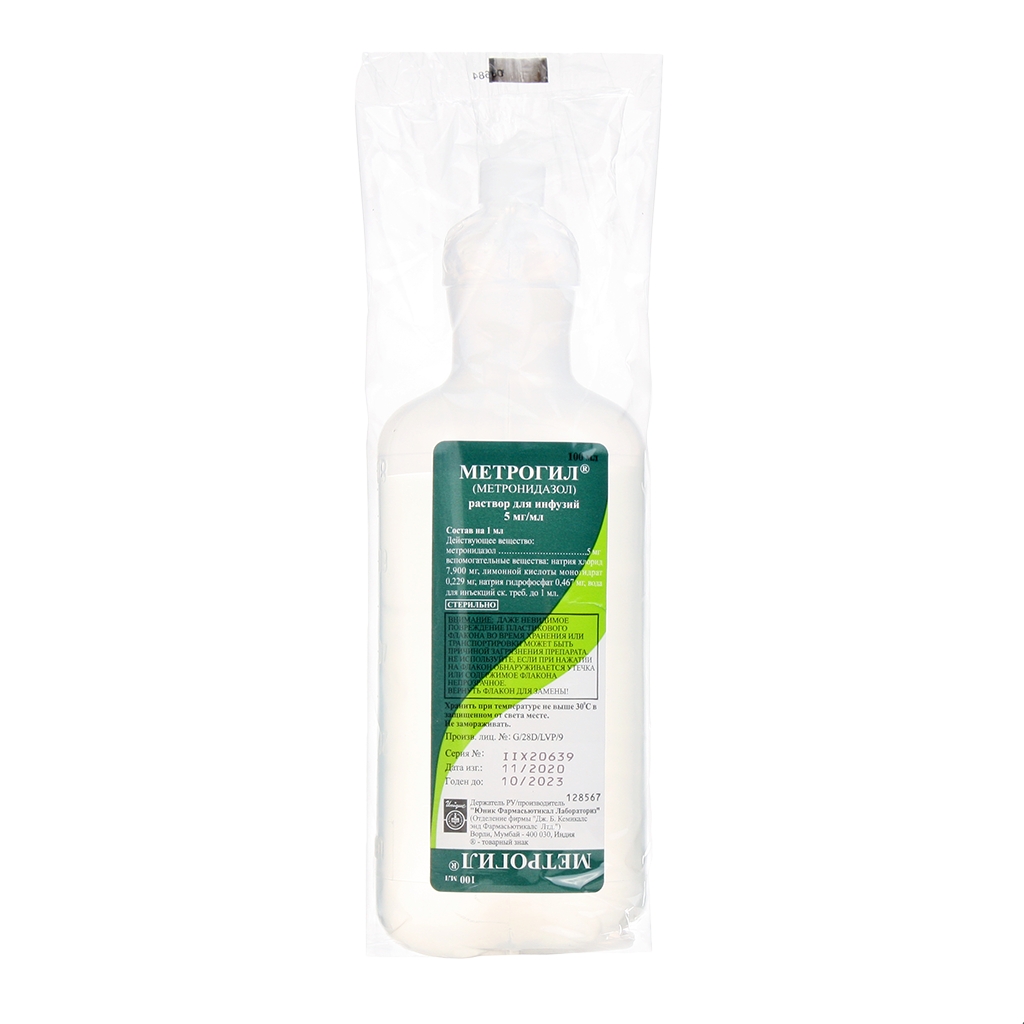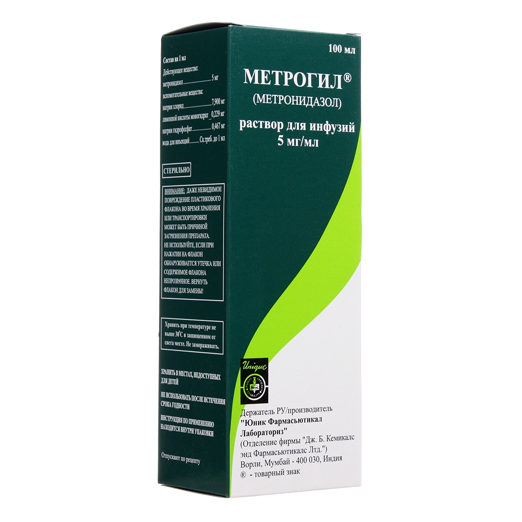 МЕТРОГИЛ 5мг/мл x 100мл N1 р-р д/инфуз ЮНИКУЕ ФАРМАСЬЮТИКАЛ ЛАБОРАТОРИЕС