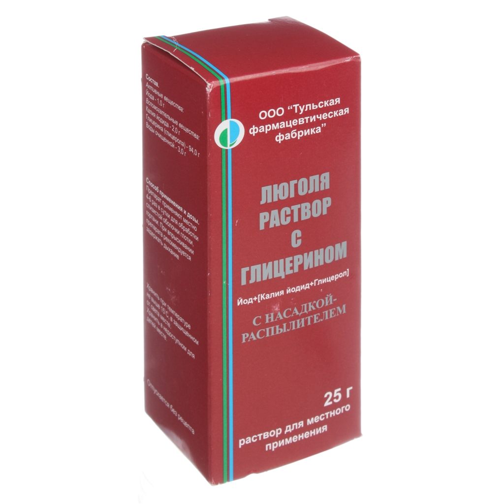 ЛЮГОЛЯ РАСТВОР С ГЛИЦЕРИНОМ 1г/100г x 25г N1 р-р д/местн прим в комплекте: насадка-распылитель ТУЛЬСКАЯ ФАРМФАБРИКА (ООО)