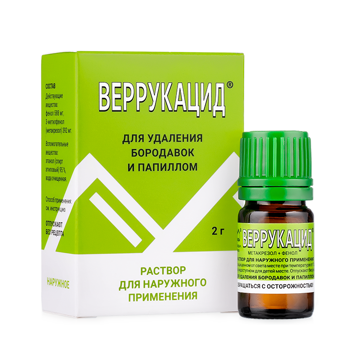 ВЕРРУКАЦИД 392мг/г+588мг/г x 2г N1 р-р д/наружн прим РЕТИНОИДЫ