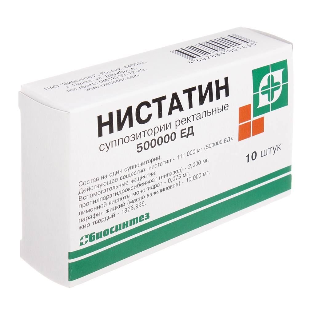 НИСТАТИН 500000ЕД N10 супп рект БИОСИНТЕЗ