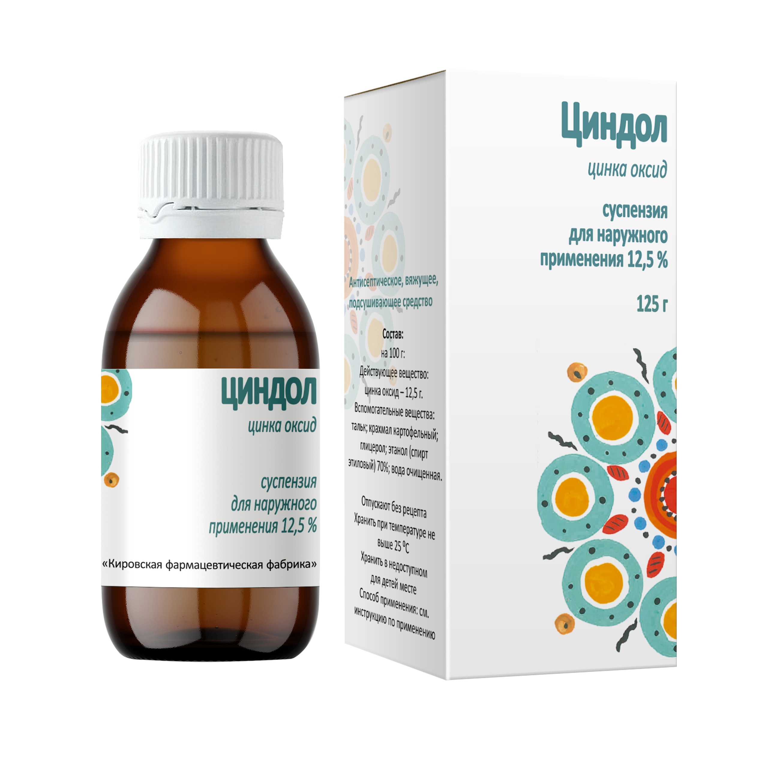 ЦИНДОЛ 12.5% x 125г N1 сусп д/наружн прим КИРОВСКАЯ ФАРМАЦЕВТИЧЕСКАЯ ФАБРИКА