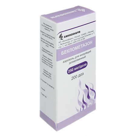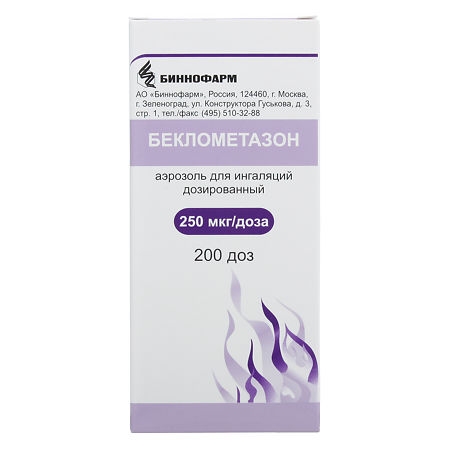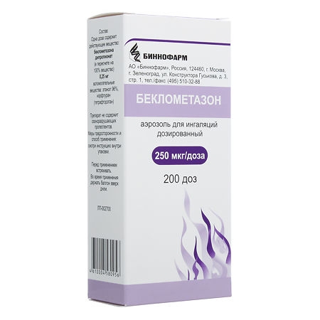 БЕКЛОМЕТАЗОН 250мкг/доза x 200доза N1 аэроз д/ингал доз в комплекте: колпачок защитный, насадка-распылитель БИННОФАРМ