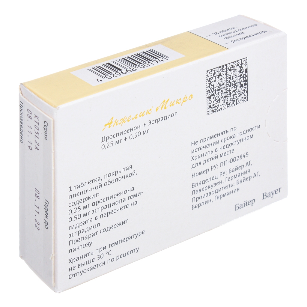 АНЖЕЛИК МИКРО 250мкг+500мкг N28 табл п.п.о. БАЙЕР ВЕЙМАР