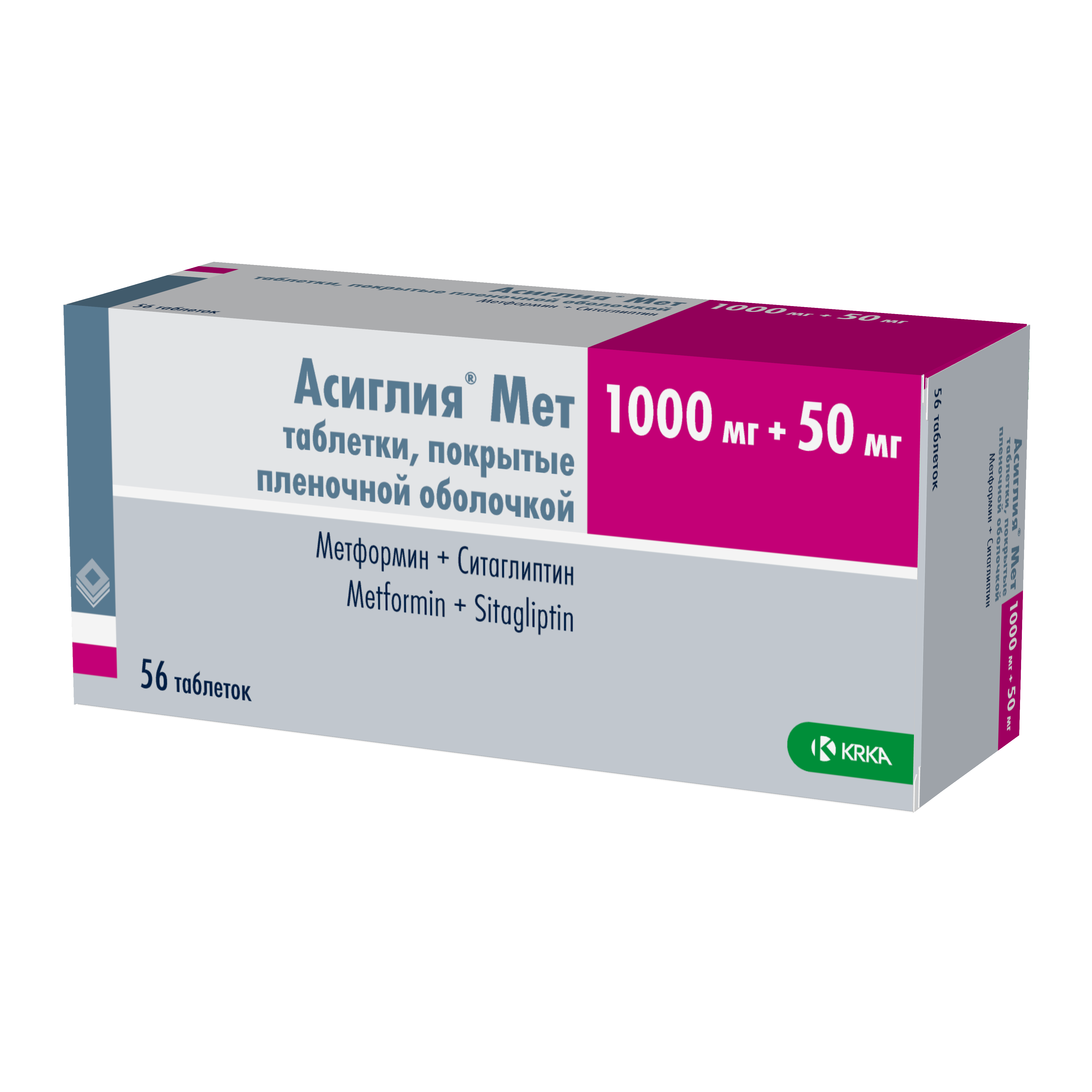 АСИГЛИЯ МЕТ 1г+50мг N56 табл п.п.о. КРКА, Д. Д., НОВО МЕСТО