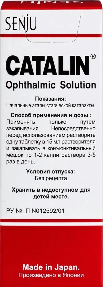 КАТАЛИН 750мкг N1 табл д/пригот кап глазн в комплекте: растворитель (флакон) 15 мл СЭНДЗЮ ФАРМАСЬЮТИКАЛ
