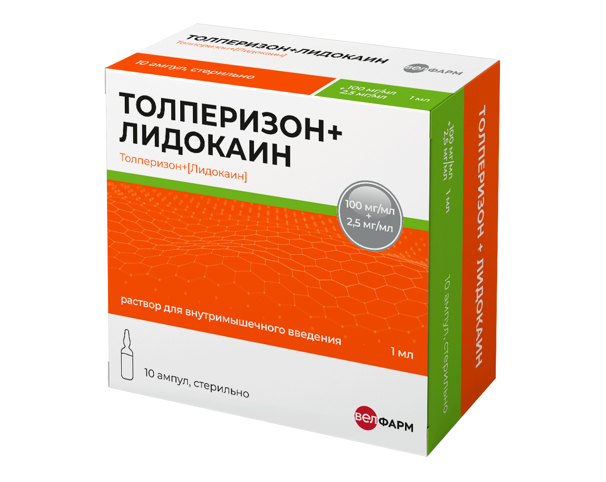 ТОЛПЕРИЗОН+ЛИДОКАИН 2.5мг/мл+100мг/мл x 1мл N5 р-р в/м введ ВЕЛФАРМ