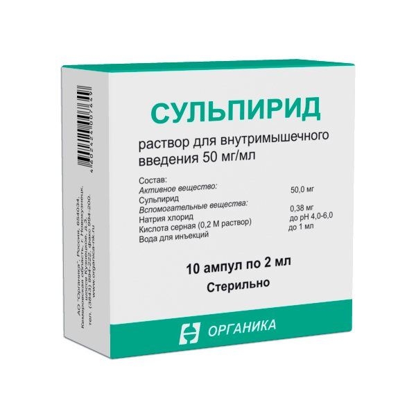 СУЛЬПИРИД 50мг/мл x 2мл N10 р-р в/м введ ОРГАНИКА