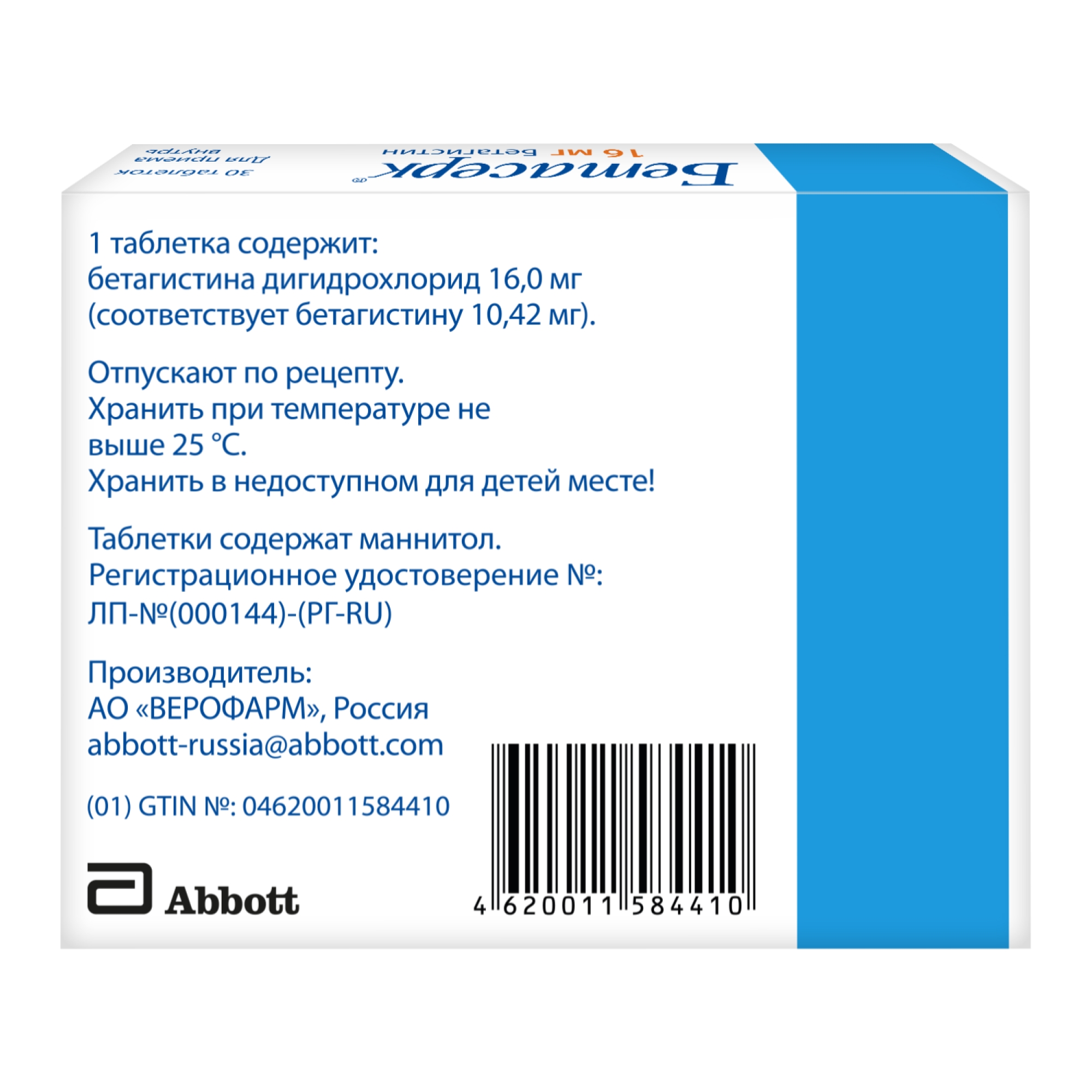 БЕТАСЕРК 16мг N30 табл ВЕРОФАРМ
