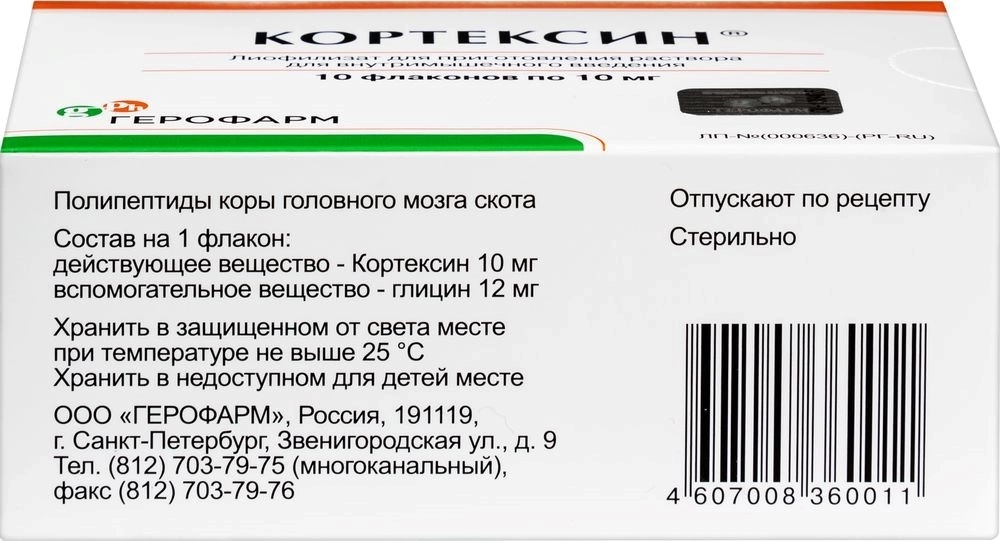 КОРТЕКСИН 10мг x 22мг N10 лиоф д/пригот р-ра в/в и в/м введ ГЕРОФАРМ