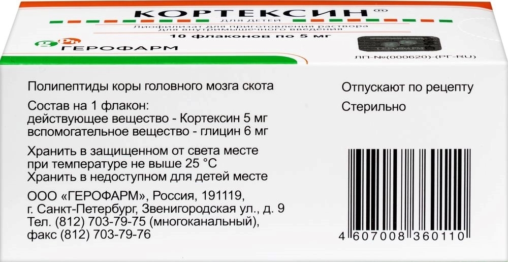 КОРТЕКСИН 5мг x 11мг N10 лиоф д/пригот р-ра в/в и в/м введ ГЕРОФАРМ