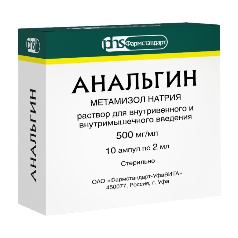 АНАЛЬГИН 500мг/мл x 2мл N10 р-р в/в и в/м введ ФАРМСТАНДАРТ-УФАВИТА