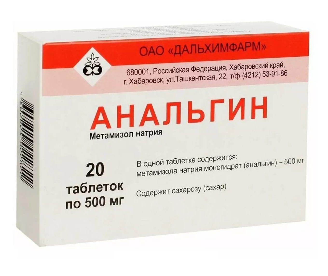 АНАЛЬГИН 500мг N20 табл ДАЛЬХИМФАРМ