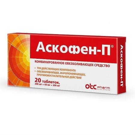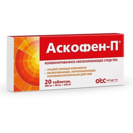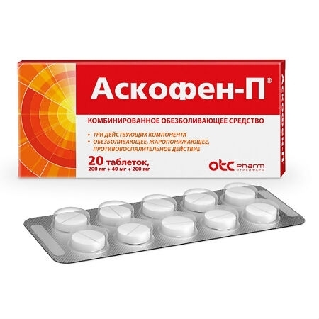 АСКОФЕН-П 200мг+40мг+200мг N20 табл ФАРМСТАНДАРТ-ЛЕКСРЕДСТВА