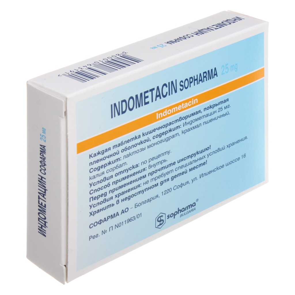 ИНДОМЕТАЦИН СОФАРМА 25мг N30 табл кишечн-раств п.п.о. СОФАРМА