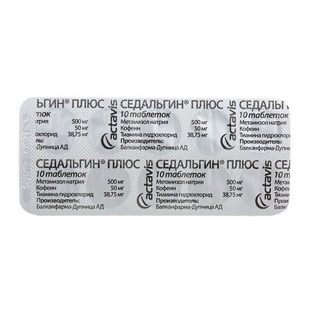 СЕДАЛЬГИН ПЛЮС 50мг+500мг+38.75мг N10 табл БАЛКАНФАРМА ДУПНИТСА