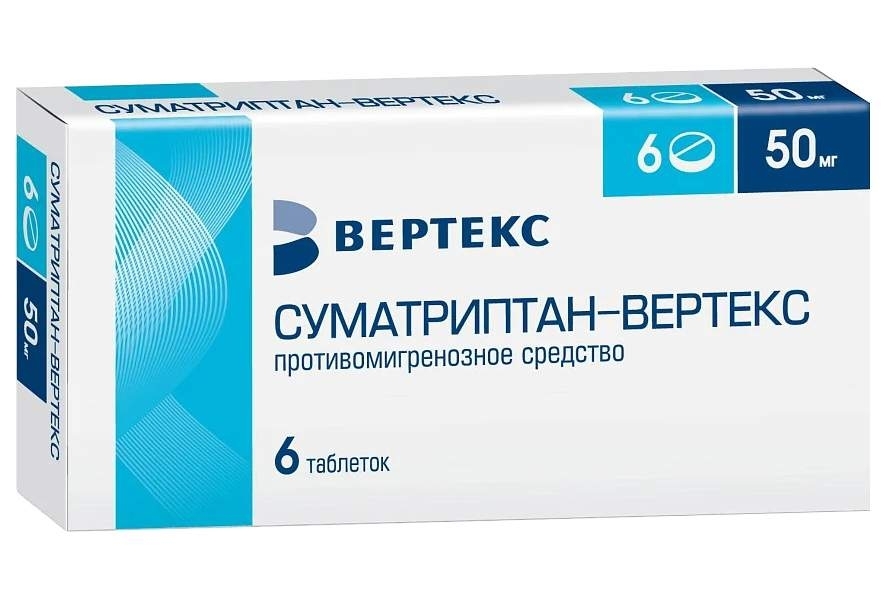 СУМАТРИПТАН - ВЕРТЕКС 50мг N6 табл п.п.о. ВЕРТЕКС