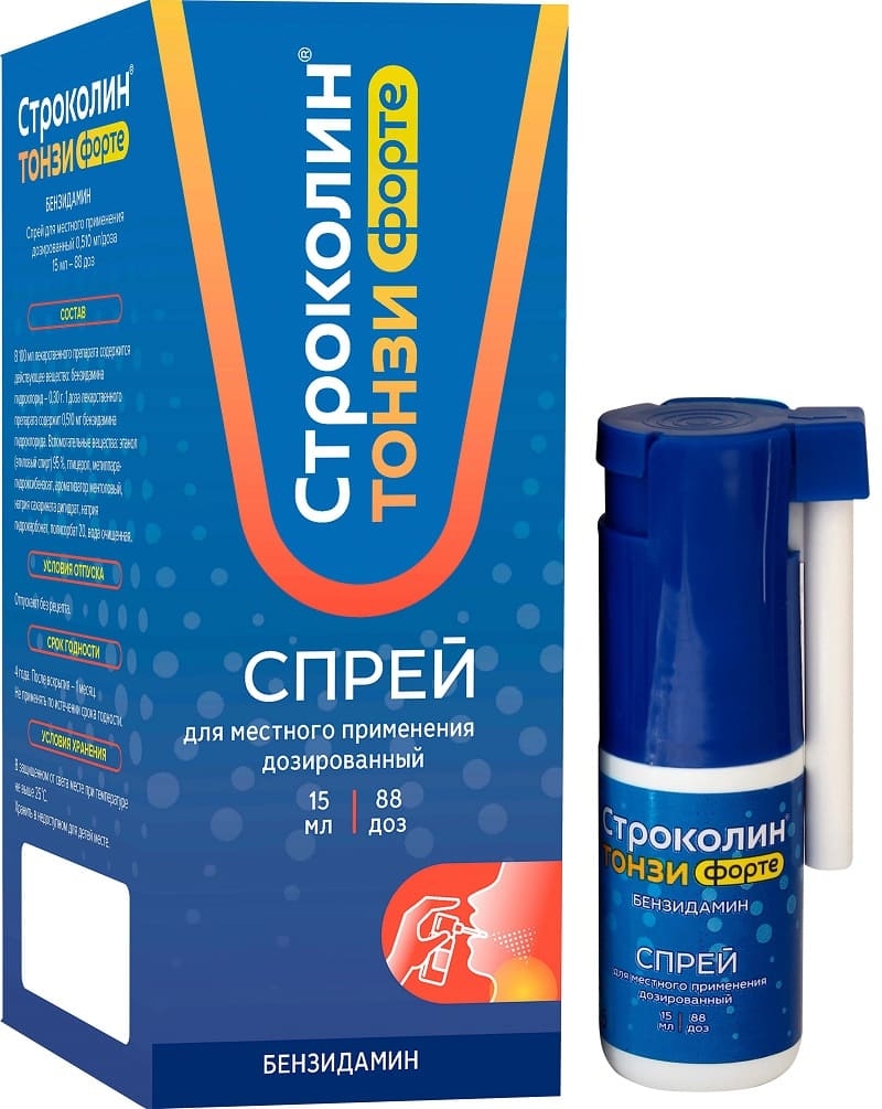 СТРОКОЛИН ТОНЗИ ФОРТЕ 0.51мг/доза x 88доза N1 спрей д/местн прим доз ЮЖФАРМ