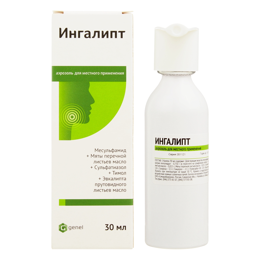 ИНГАЛИПТ д.в. x 30мл N1 аэроз д/местн прим в комплекте: колпачок предохранительный, насадка-распылитель САМАРАМЕДПРОМ