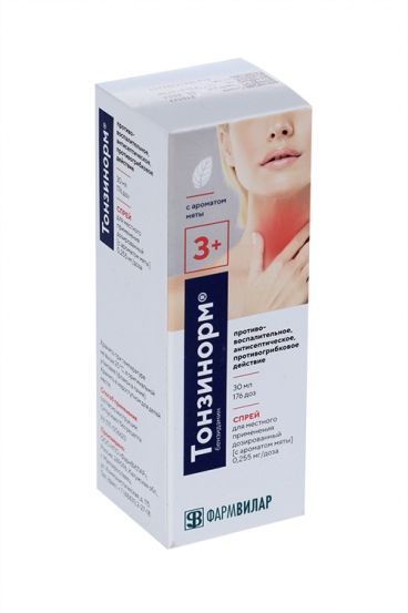 ТОНЗИНОРМ 0.255мг/доза x 30мл N1 спрей д/местн прим доз с аром мята НПО ФАРМВИЛАР
