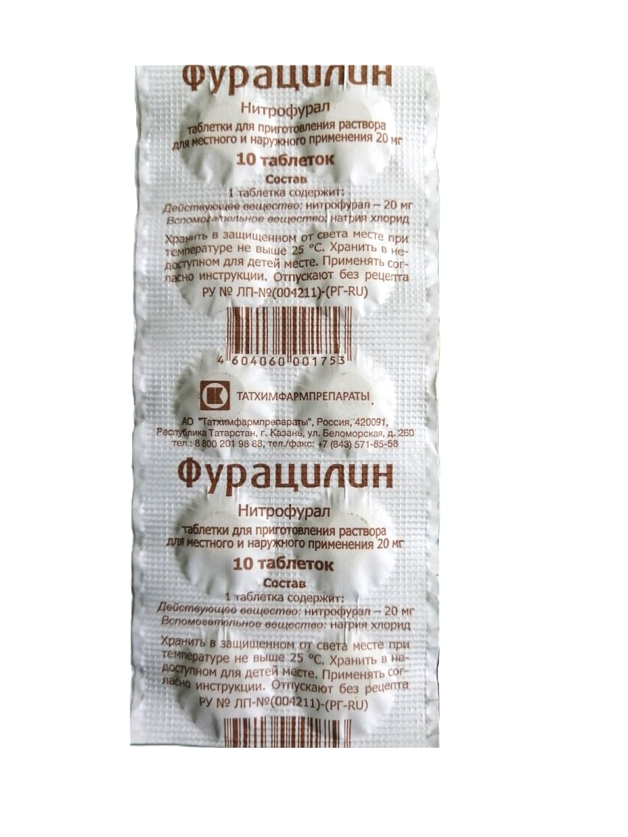 ФУРАЦИЛИН 20мг N10 табл д/пригот р-ра д/местн и наружн прим ТАТХИМФАРМПРЕПАРАТЫ