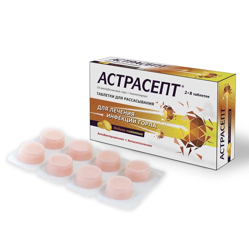 АСТРАСЕПТ 600мкг+1.2мг N16 леденцы лекарств вкус аром мёд лимон МАКСОН ФАРМАСЬЮТИКАЛС