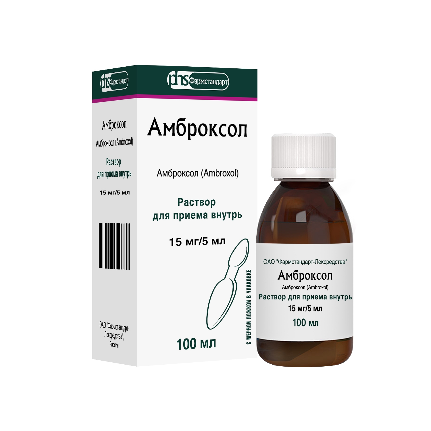 АМБРОКСОЛ 15мг/5мл x 100мл N1 р-р д/приема внутрь в комплекте: ложка мерная ФАРМСТАНДАРТ-ЛЕКСРЕДСТВА