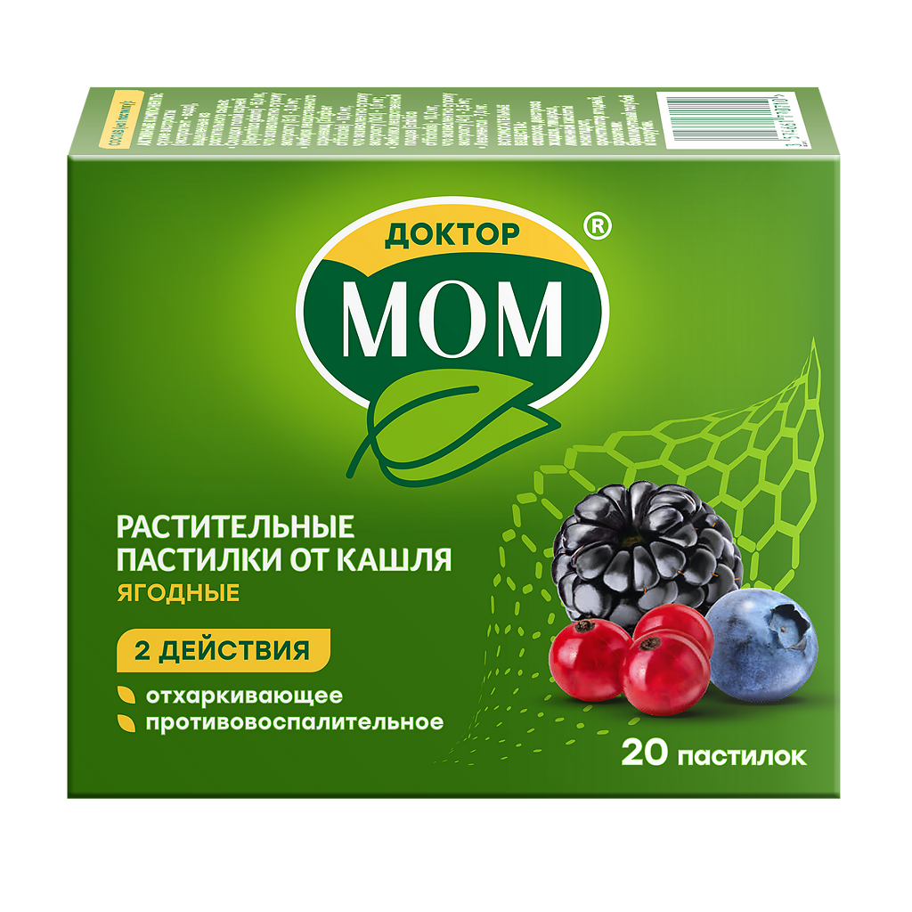 ДОКТОР МОМ РАСТИТЕЛЬНЫЕ ПАСТИЛКИ ОТ КАШЛЯ N20 пастилки ягодн ЮНИКУЕ ФАРМАСЬЮТИКАЛ ЛАБОРАТОРИЕС