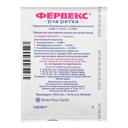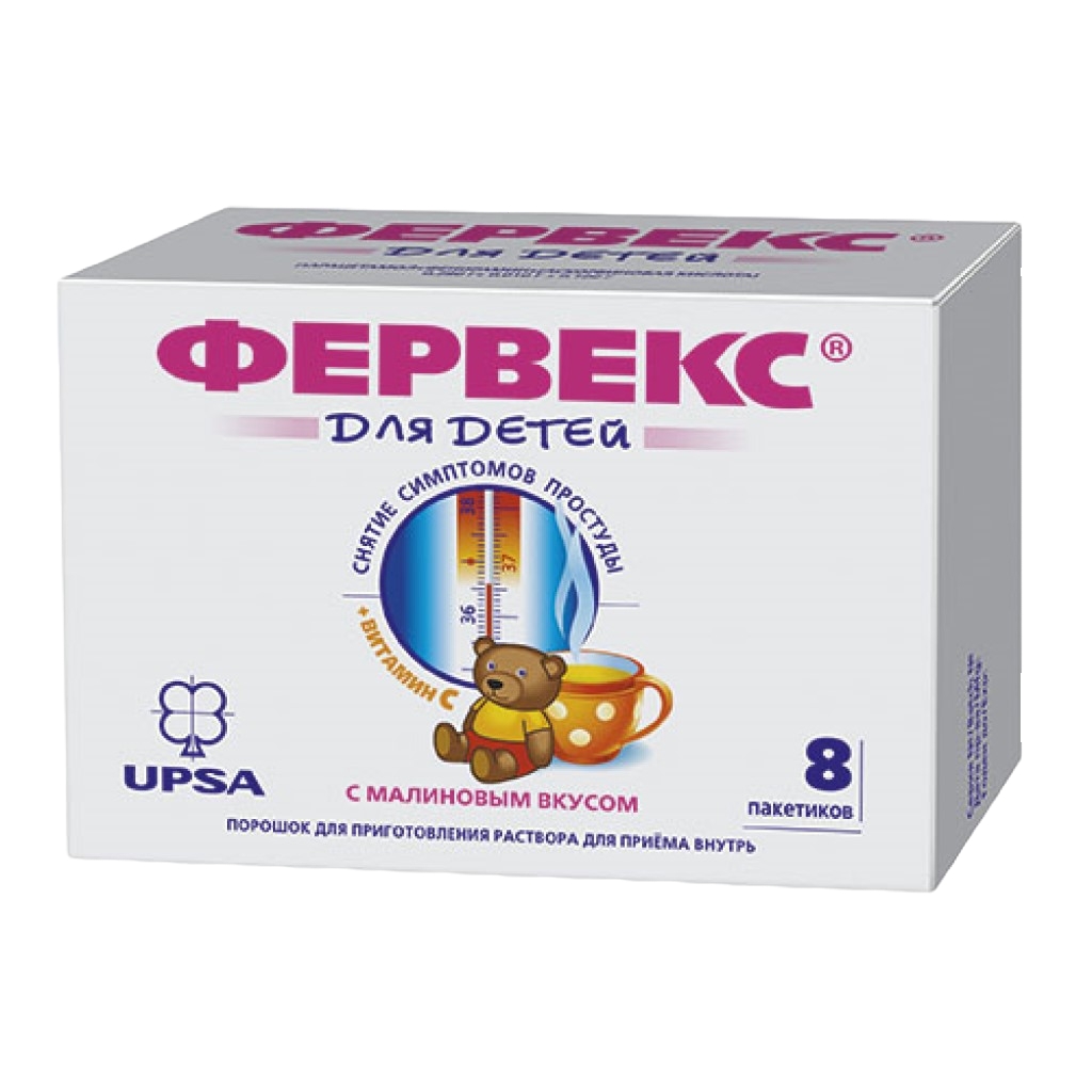 ФЕРВЕКС ДЛЯ ДЕТЕЙ 100мг+280мг+10мг x 3г N8 пор д/пригот р-ра д/приема внутрь УПСА