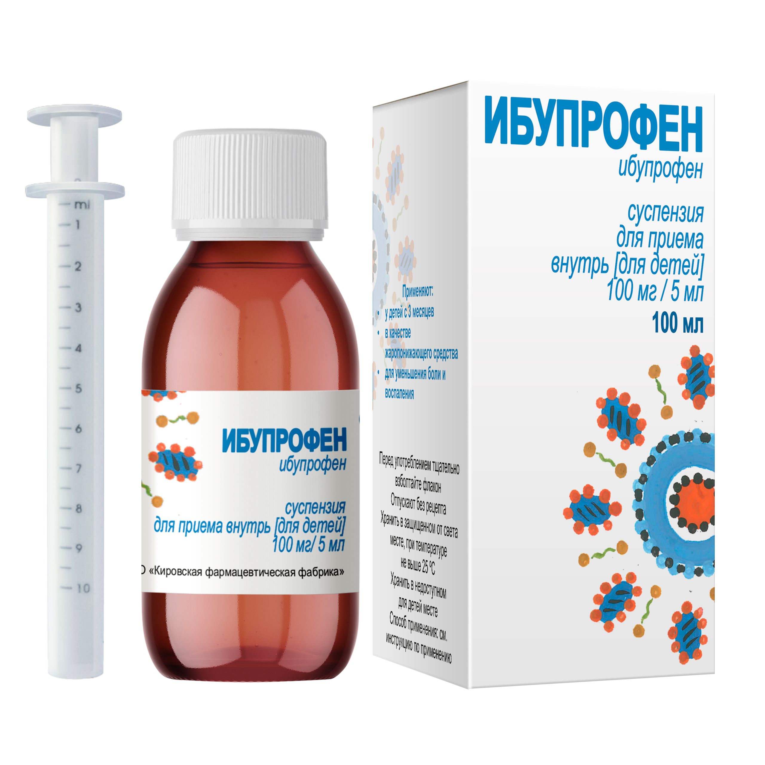 ИБУПРОФЕН 100мг/5мл x 100мл N1 сусп д/приема внутрь д/дет в комплекте: устройство дозирующее КИРОВСКАЯ ФАРМАЦЕВТИЧЕСКАЯ ФАБРИКА