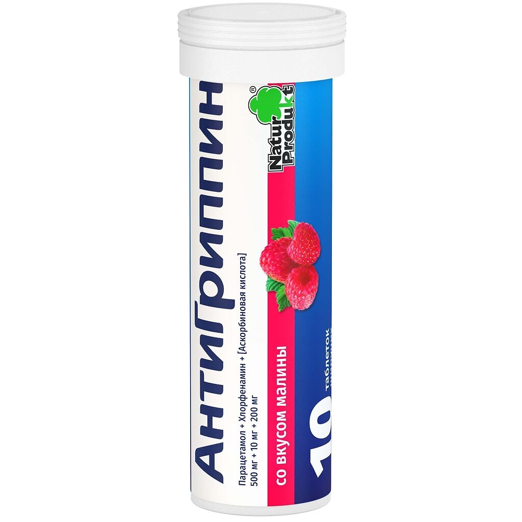 АНТИГРИППИН 200мг+500мг+10мг N10 табл шип малин НП ФАРМА