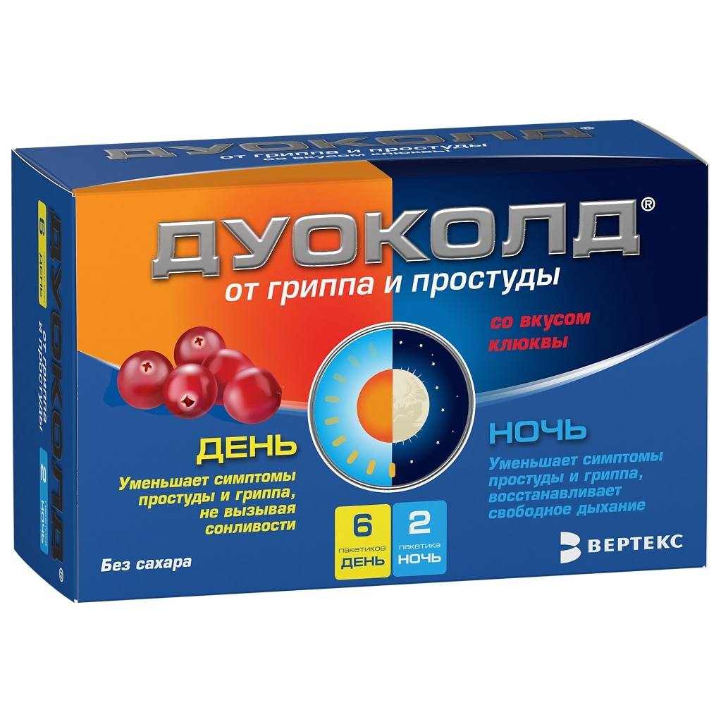 ДУОКОЛД д.в. x 5г; д.в. x 5г N6+2 набор: пор д/пригот р-ра д/приема внутрь клюкв ВЕРТЕКС