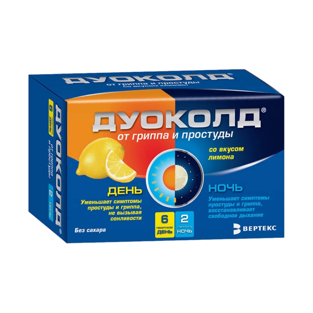 ДУОКОЛД д.в. x 5г; д.в. x 5г N6+2 набор: пор д/пригот р-ра д/приема внутрь лимон ВЕРТЕКС