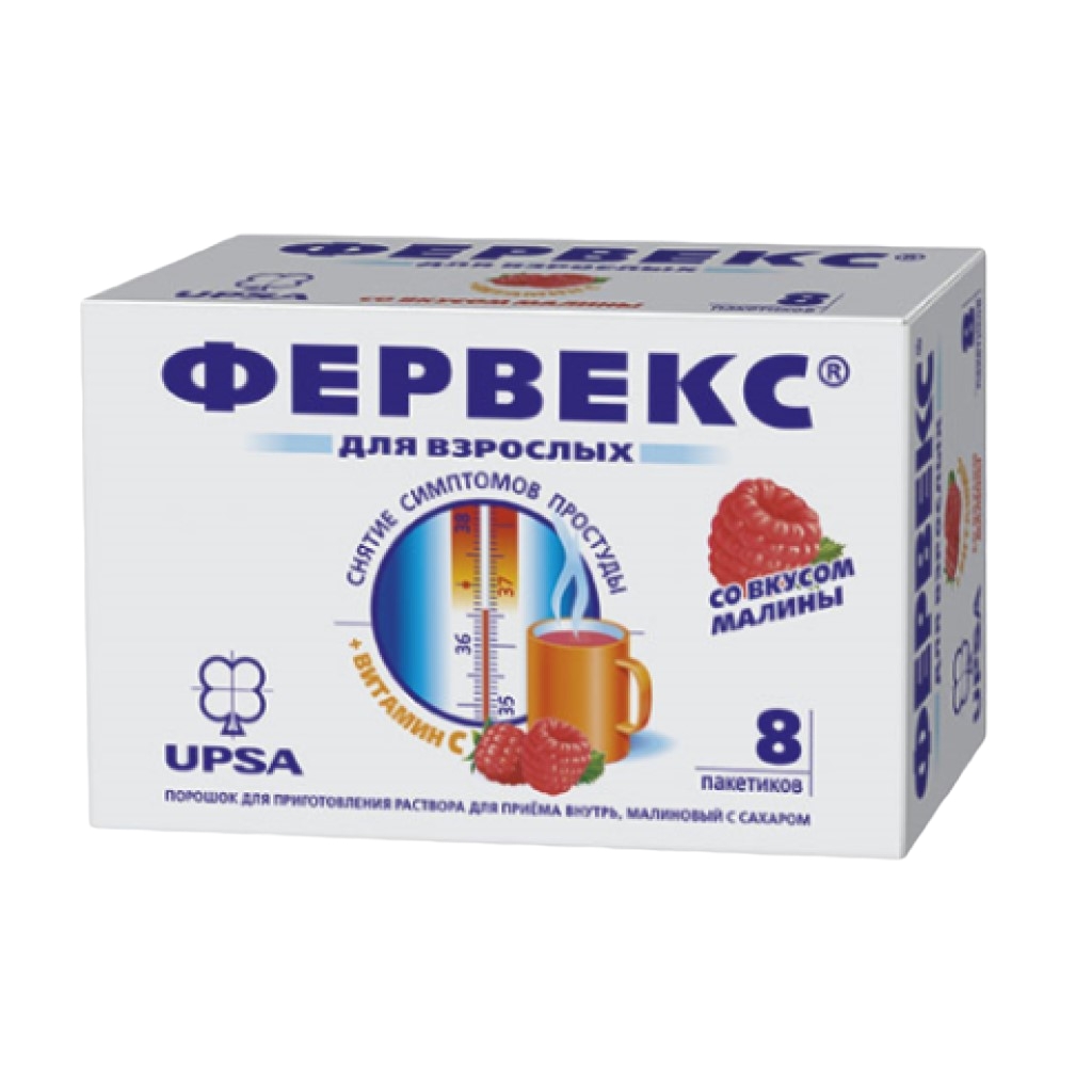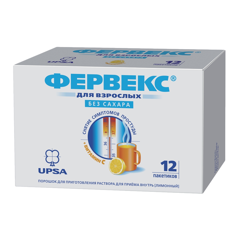 ФЕРВЕКС 200мг+500мг+25мг x 4.95г N12 пор д/пригот р-ра д/приема внутрь лимон УПСА