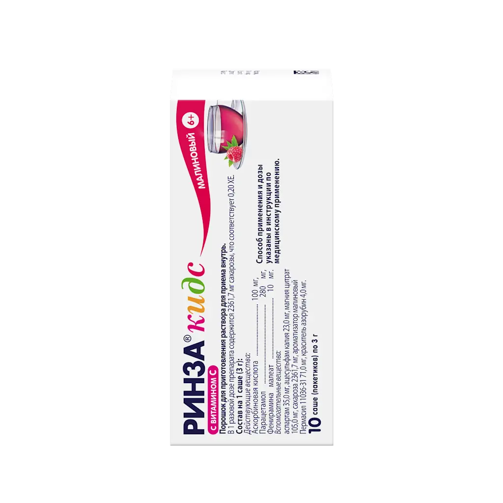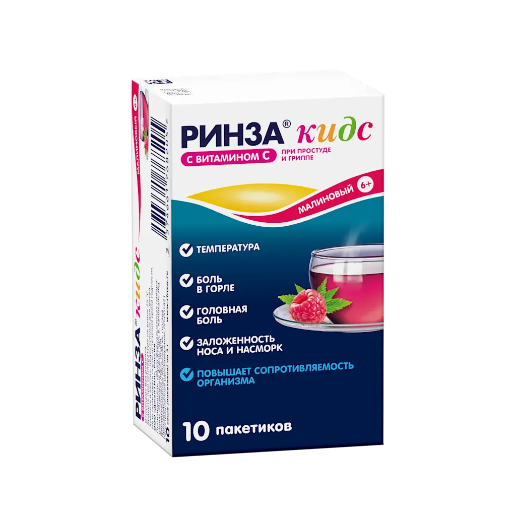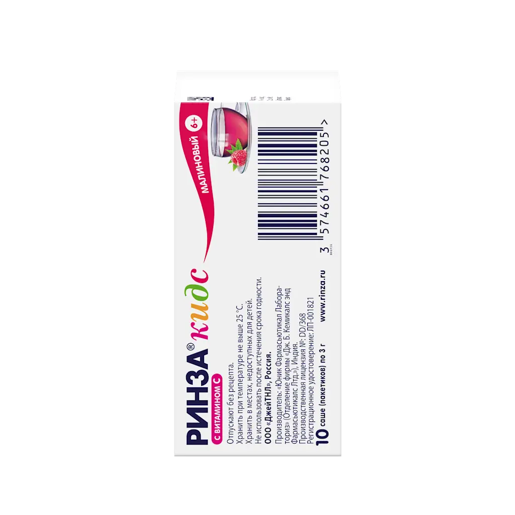 РИНЗА КИДС 100мг/3г+280мг/3г+10мг/3г x 3г N10 пор д/пригот р-ра д/приема внутрь малин ЮНИКУЕ ФАРМАСЬЮТИКАЛ ЛАБОРАТОРИЕС