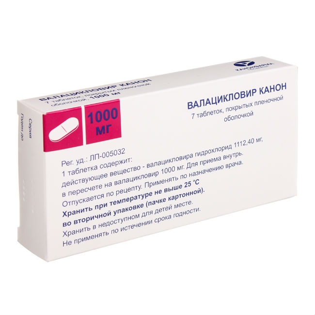 ВАЛАЦИКЛОВИР КАНОН 1г N7 табл п.п.о. КАНОНФАРМА ПРОДАКШН
