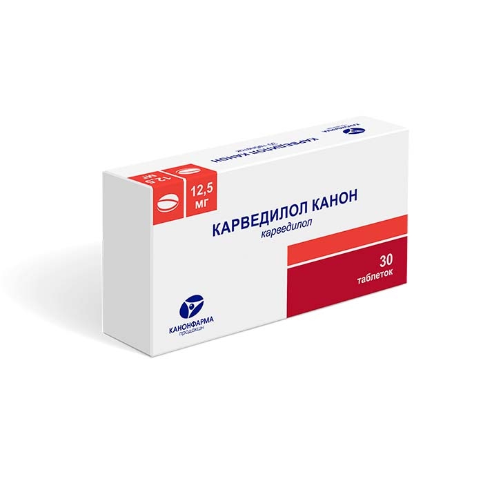 КАРВЕДИЛОЛ КАНОН 12.5мг N30 табл КАНОНФАРМА ПРОДАКШН