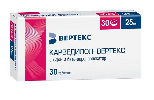 КАРВЕДИЛОЛ-ВЕРТЕКС 25мг N30 табл ВЕРТЕКС
