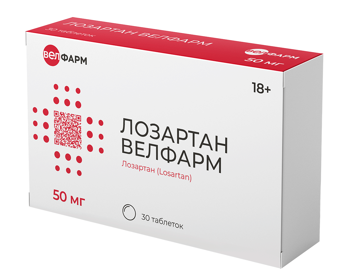 ЛОЗАРТАН ВЕЛФАРМ 50мг N30 табл п.п.о. ВЕЛФАРМ