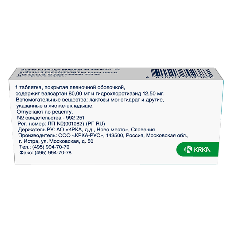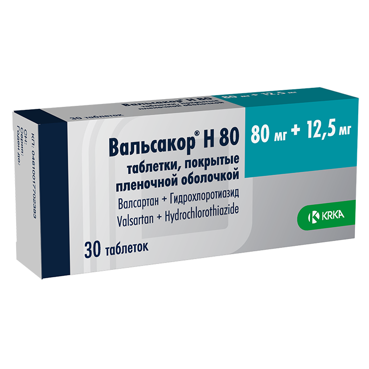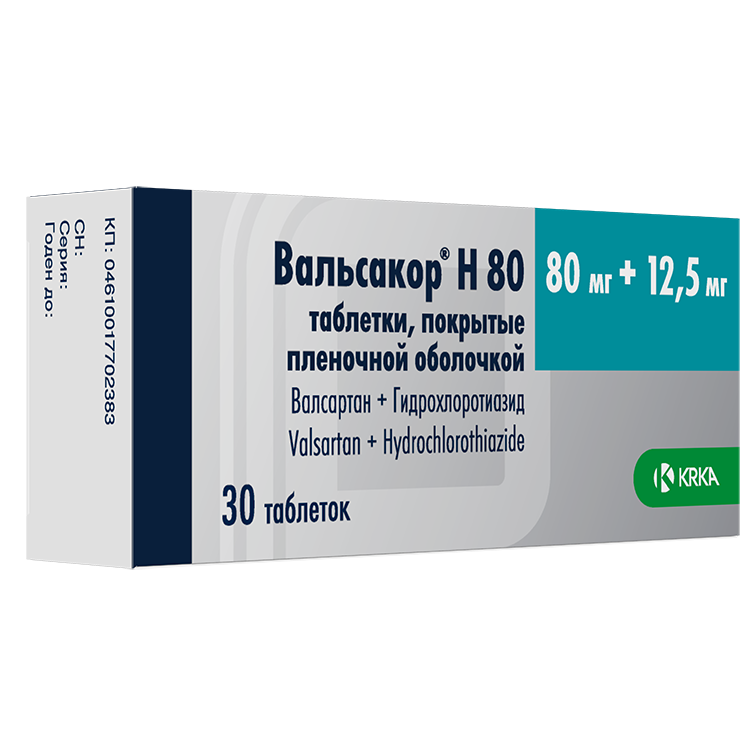 ВАЛЬСАКОР Н80 80мг+12.5мг N30 табл п.п.о. КРКА-РУС