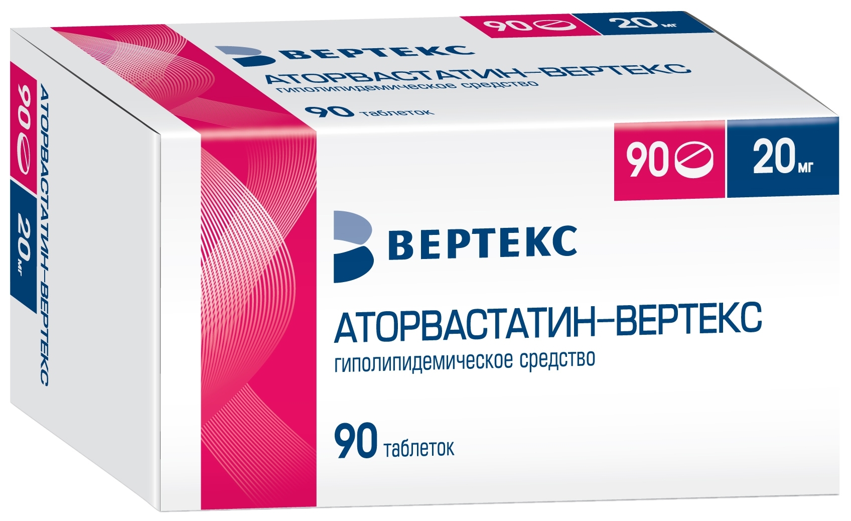 АТОРВАСТАТИН-ВЕРТЕКС 20мг N90 табл п.п.о. ВЕРТЕКС