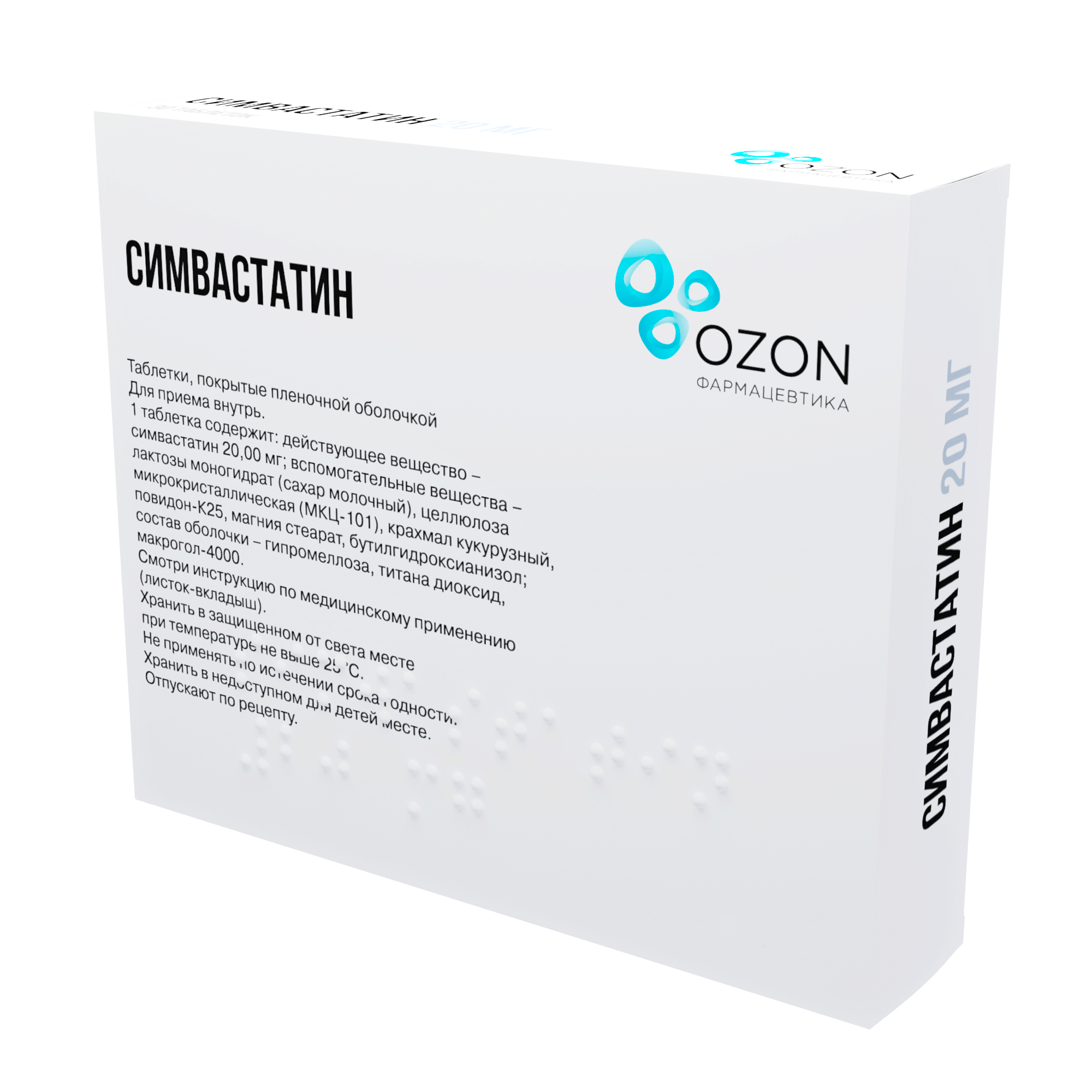 СИМВАСТАТИН 20мг N30 табл п.п.о. ОЗОН