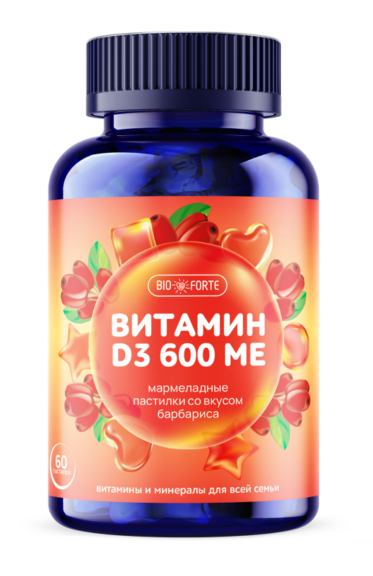 Биофорте Витамин Д3 пастилки жев мармеладные барбарис №60
