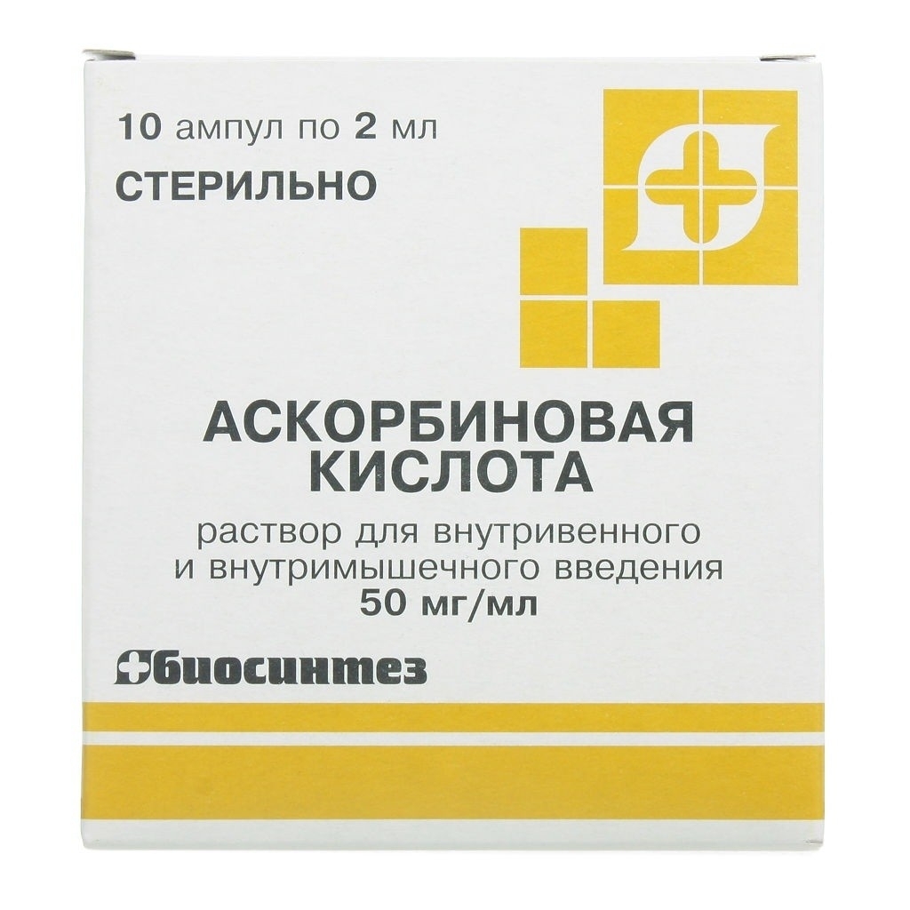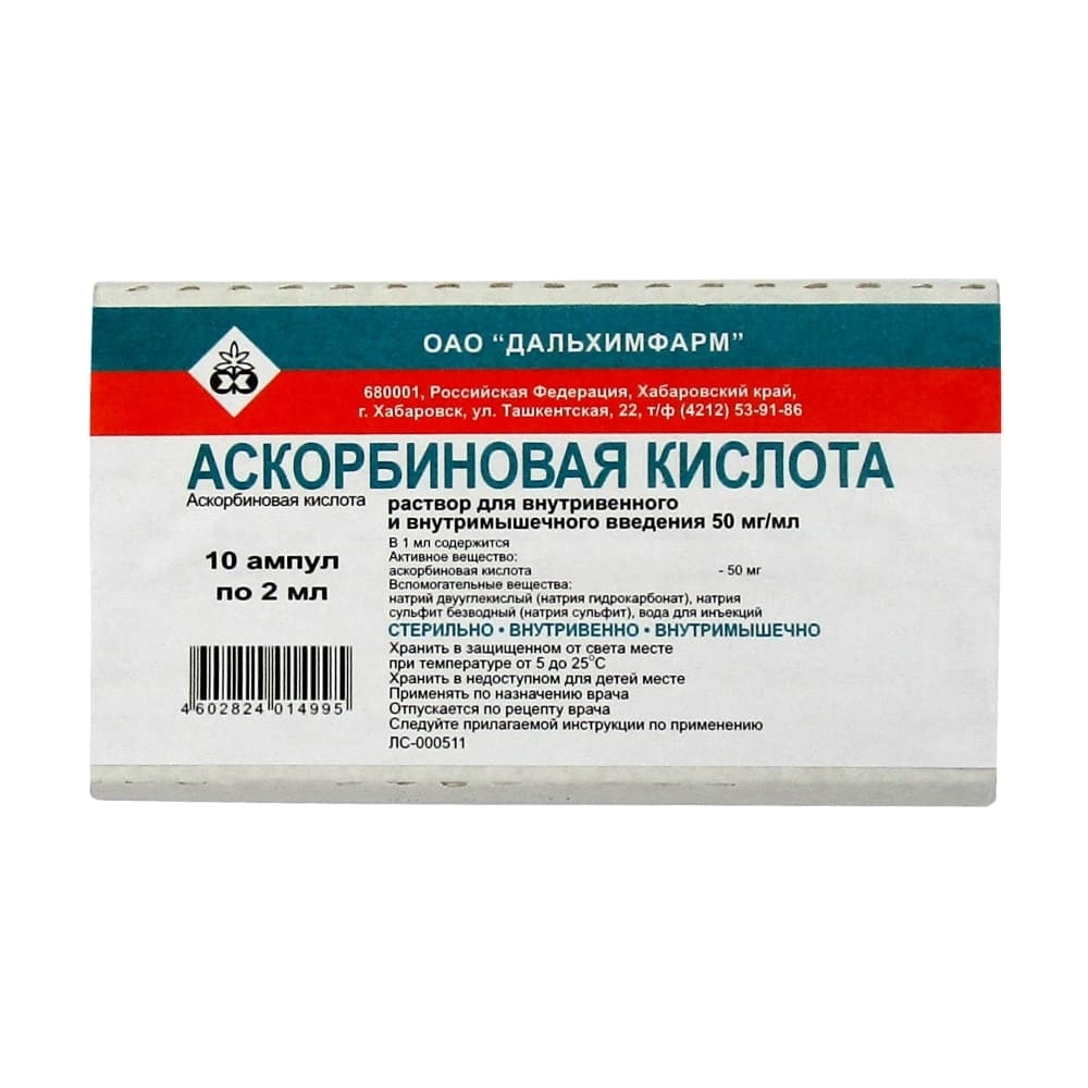 АСКОРБИНОВАЯ КИСЛОТА 50мг/мл x 2мл N10 р-р в/в и в/м введ ДАЛЬХИМФАРМ