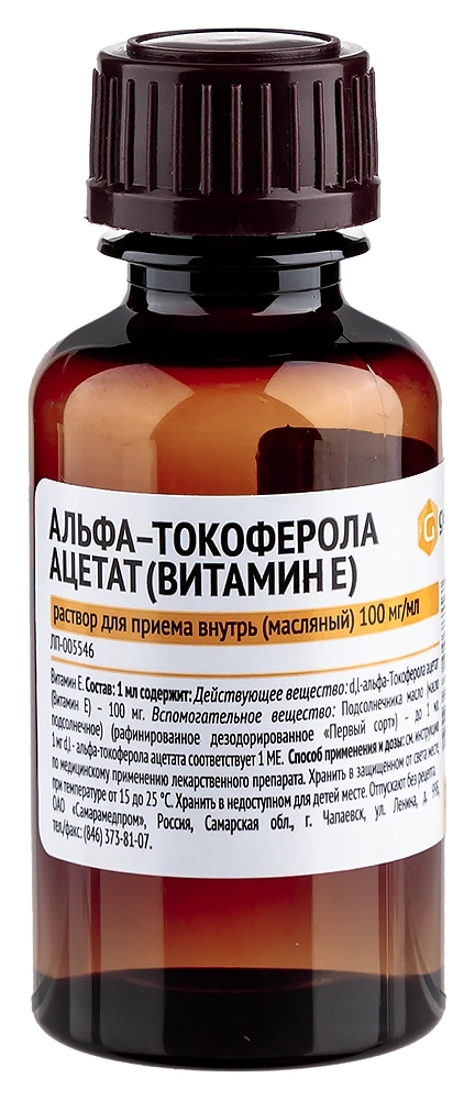АЛЬФА - ТОКОФЕРОЛА АЦЕТАТ (ВИТАМИН Е) 100мг/мл x 20мл N1 р-р д/приема внутрь масл САМАРАМЕДПРОМ