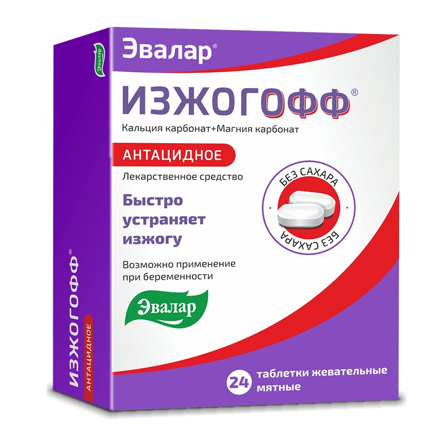 ИЗЖОГОФФ 680мг+80мг N24 табл жеват мятн ЭВАЛАР