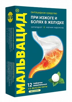 МАЛЬВАЦИД 400мг+400мг N12 табл жеват АВВА РУС